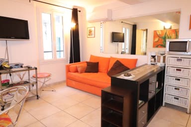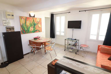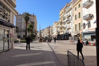 Palais des Festivals, beaches, train and bus stations 5 min walking distance. In a pedestrian street near shops and restaurants, charming 1-bedroom apartment on the 3rd floor (no lift) of a Provençal building. Sleeps 4: bedroom with double bed, sofa converting into 2 singles. Small kitchenette, Wi-Fi, Free TV, air conditioning, double glazing.