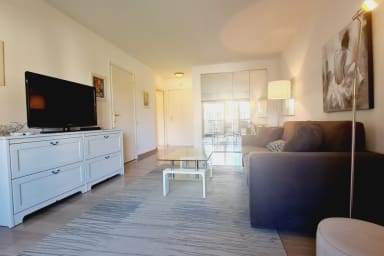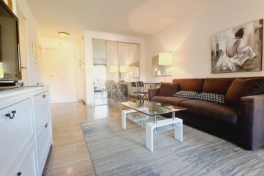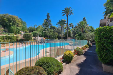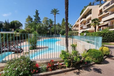 Quartier résidentiel, à 20 minutes à pied du centre-ville, dans une résidence arborée de standing avec 2 piscines, et un tennis, appartement de 2 pièces pour 4 personnes. Il se compose d'un hall d'entrée desservant un salon et une chambre exposés Ouest avec une belle terrasse, une cuisine séparée et une salle de bains complètent ce bien. Le bien est équipé du double vitrage et de la climatisation.