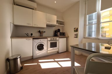 Ce beau studio en excellent état apporte tout le confort pour un séjour d'1 ou 2 personnes. Il se compose d'un salon , une cuisine et une salle de douche avec WC. La canapé lit dispose d'un couchage de qualité, un TV avec chaines étrangères, double vitrage, cuisine individuelle avec coin repas, climatisation et accès internet. Il se situe au 2° étage sans ascenseur.