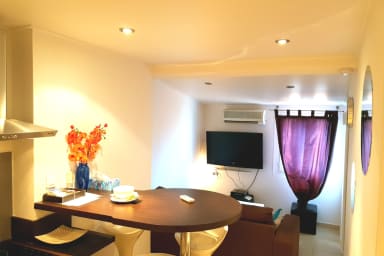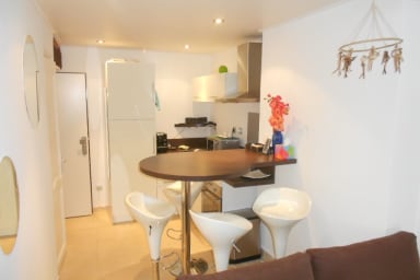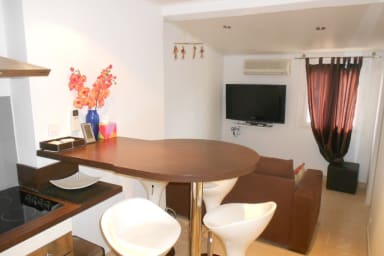 Joli 2P moderne en plein centre de Cannes, à 5 min à pied du Palais des Festivals. 3ᵉ étage sans ascenseur, séjour climatisé, cuisine américaine équipée, chambre avec salle de douche.