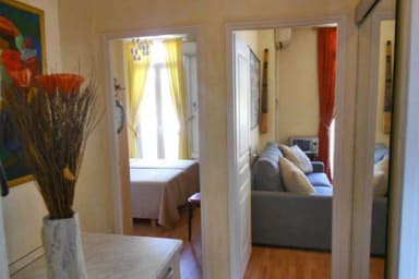 En plein cœur du centre-ville, dans la zone piétonne Félix Faure/Meynadier/Forville, à deux pas des plages et commerces, charmant 2P au 4ᵉ et dernier étage sans ascenseur. Il comprend une entrée, un séjour avec canapé-lit, cuisinette et balcon, une chambre avec 2 lits simples (ou king-size), salle de douche et WC séparé. Climatisation, double vitrage, très calme.