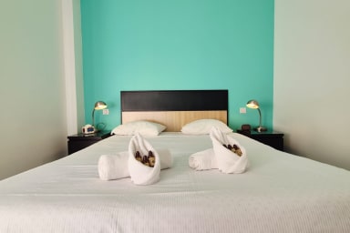 une chambre avec lit double,